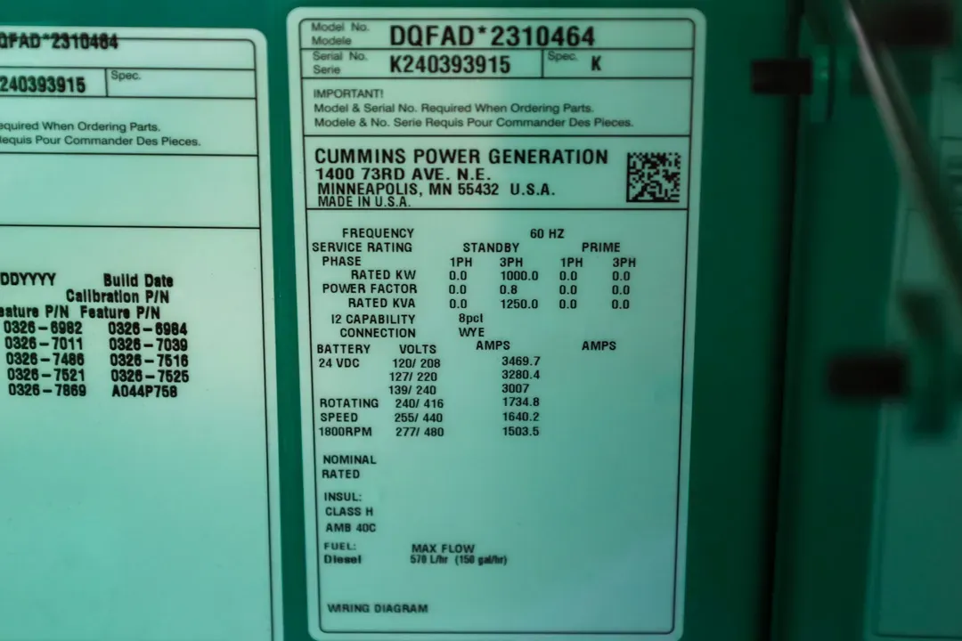 1000kW Cummins Diesel Generator Set #089789