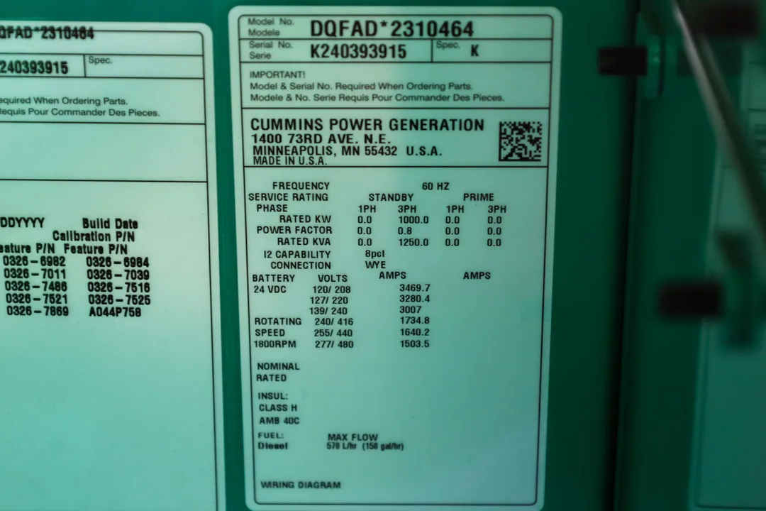 1000kW Cummins Diesel Generator Set #090357