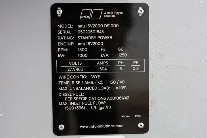 New MTU 1000kW Diesel generator. This is a brand new unit available at our Jacksonville facility.