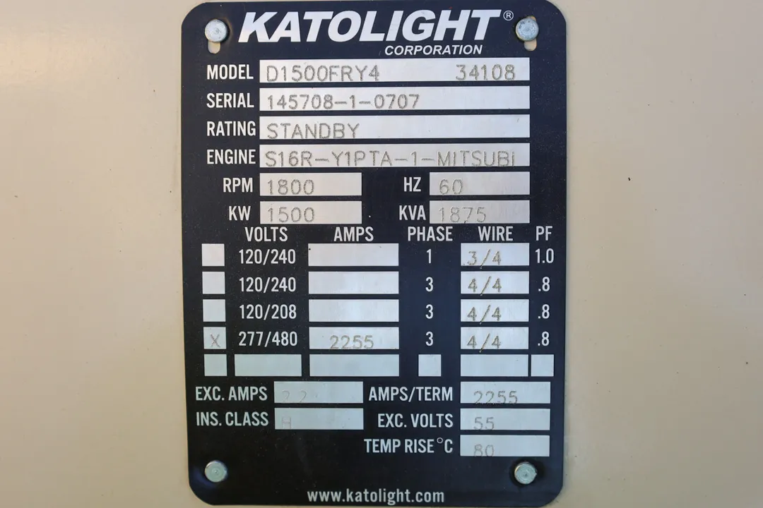 Used Katolight 1500kW Diesel generator. This power unit has approximately 703 hours of use. It is ready to ship from our Brighton facility.
