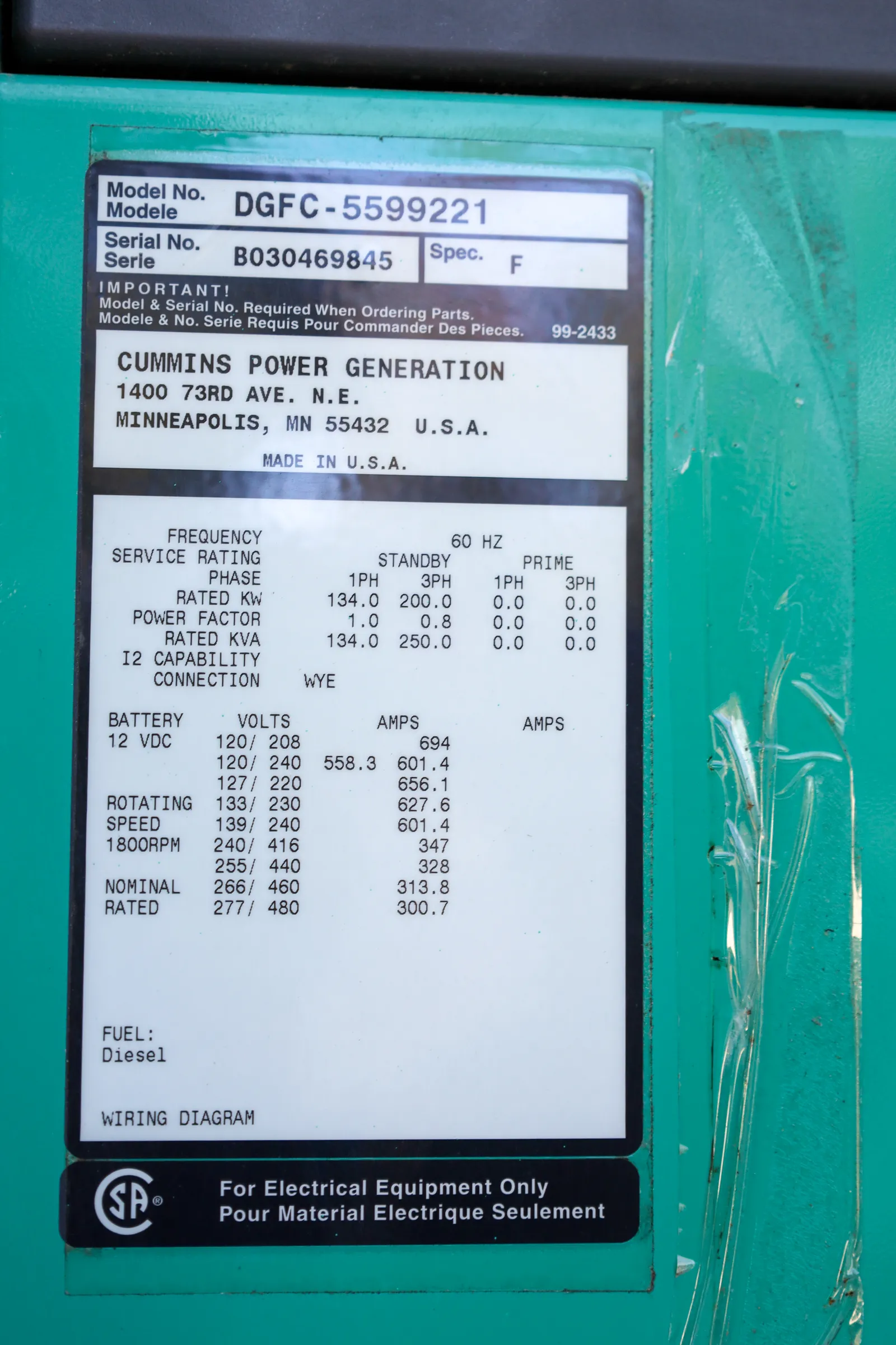 Used Cummins 200kW Diesel generator. This power unit has approximately 197 hours of use. It is available at our Jacksonville facility.