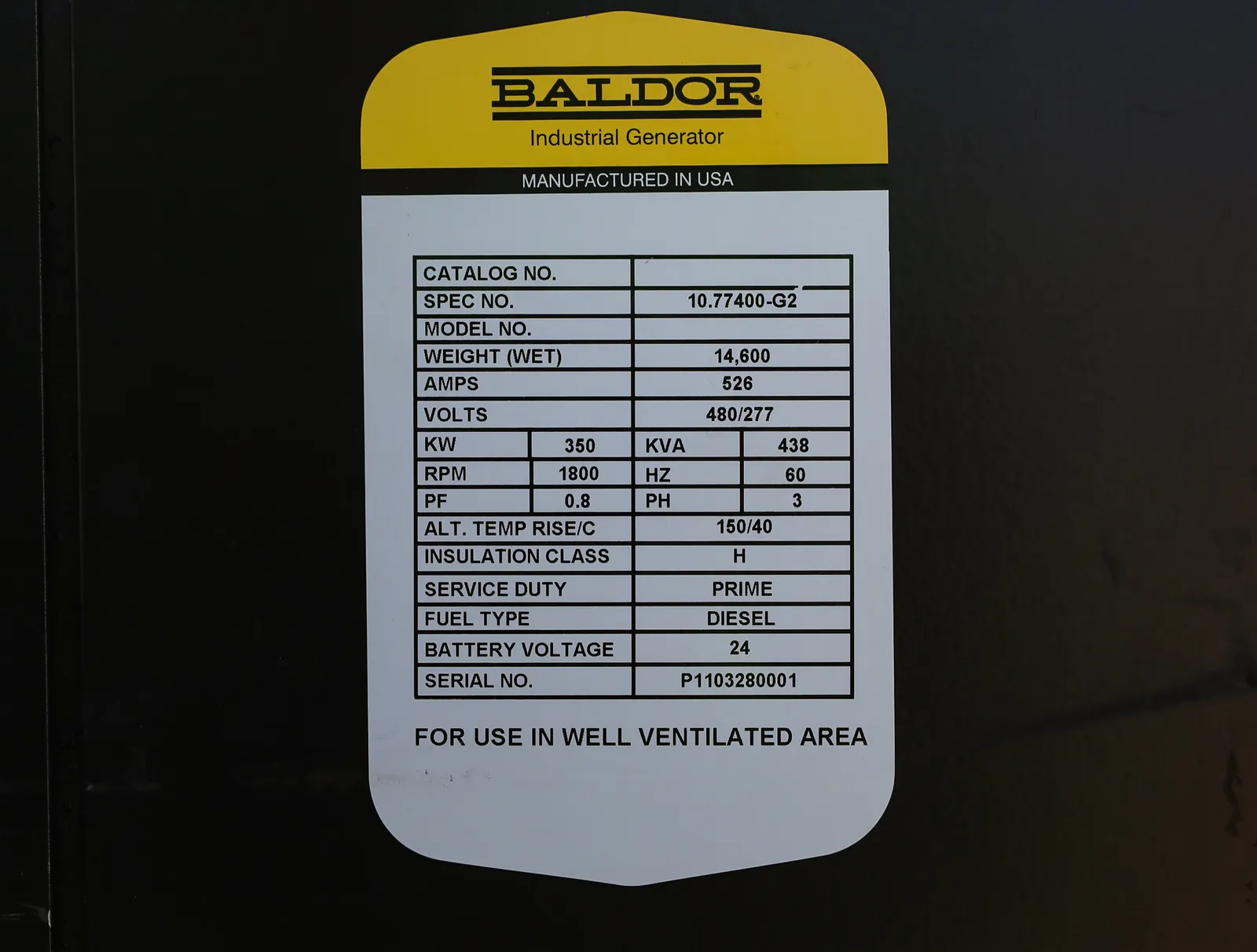Used Baldor 350kW Diesel generator. This power unit has approximately 12408 hours of use. It is ready to ship from our Brighton facility.