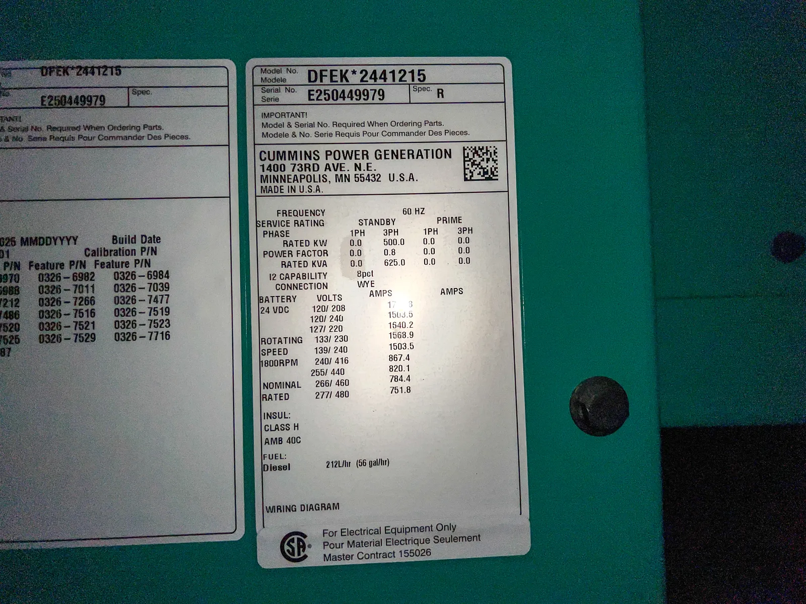 | Generator End Serial # | E250449979 |