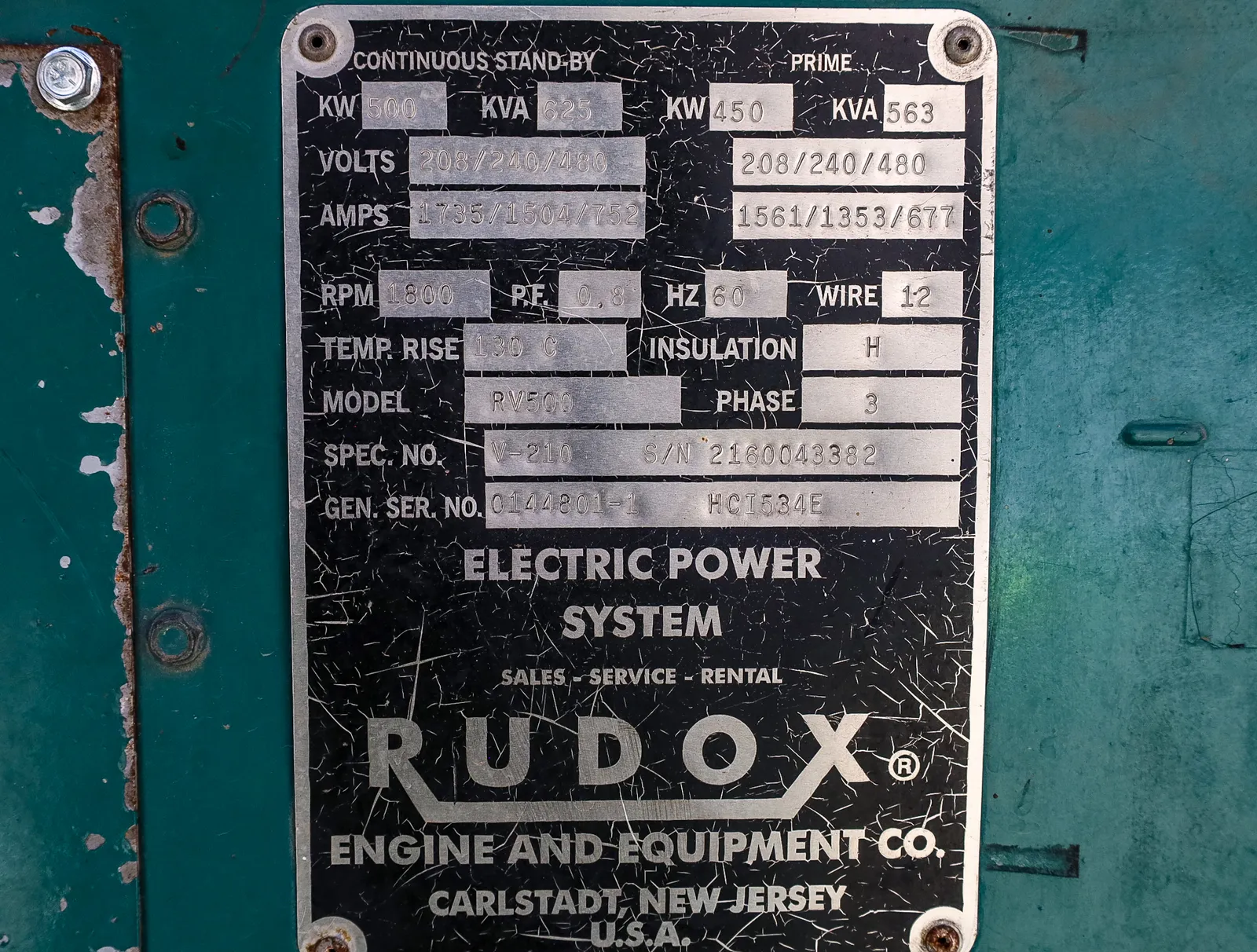 | Generator End Serial # | 0144801-1 HCI534E |