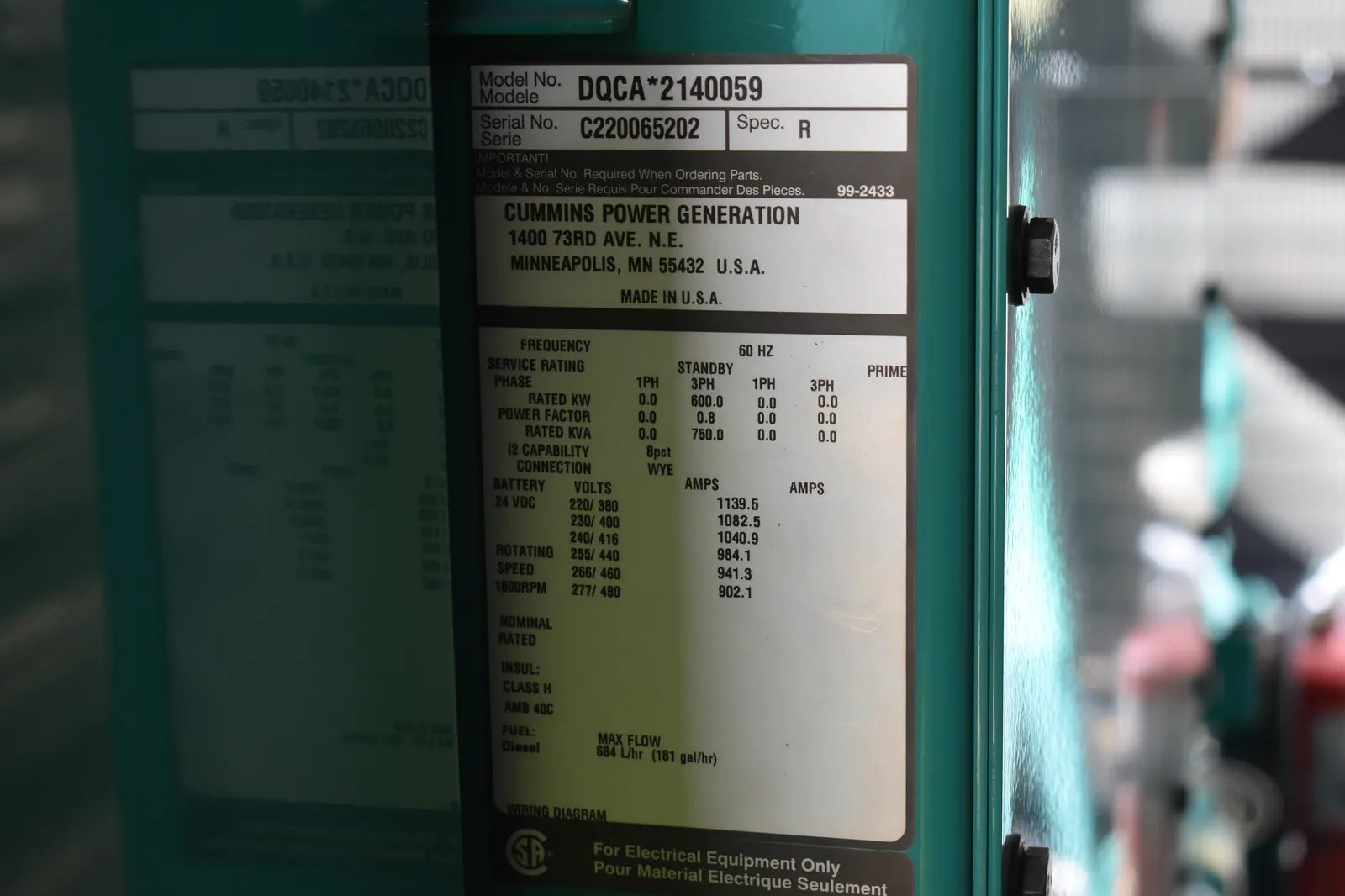| Generator End Model # | DQCA2140059 |