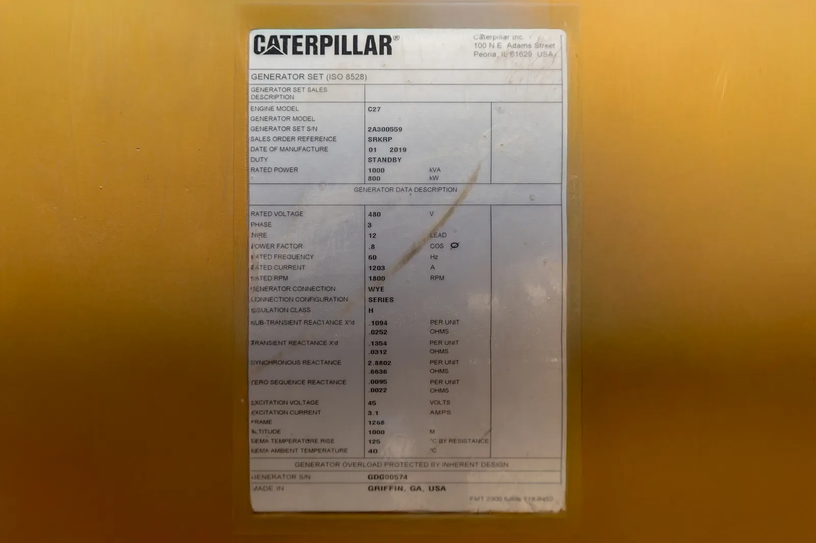 Used Caterpillar 800kW Diesel generator. This power unit has approximately 122 hours of use. It is ready to ship from our Jacksonville facility.