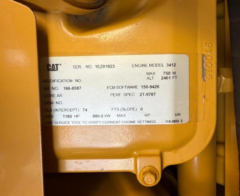 Used CAT 3412C Generator Set; 2001 Model – 251 Hours; 800kW Standby Rated; 480/277V; Sound Attenuated Enclosure; EMCP 2 Controller; Breaker; Jacket Water Heater; Battery Charger; Cleaned, Serviced, Load Tested